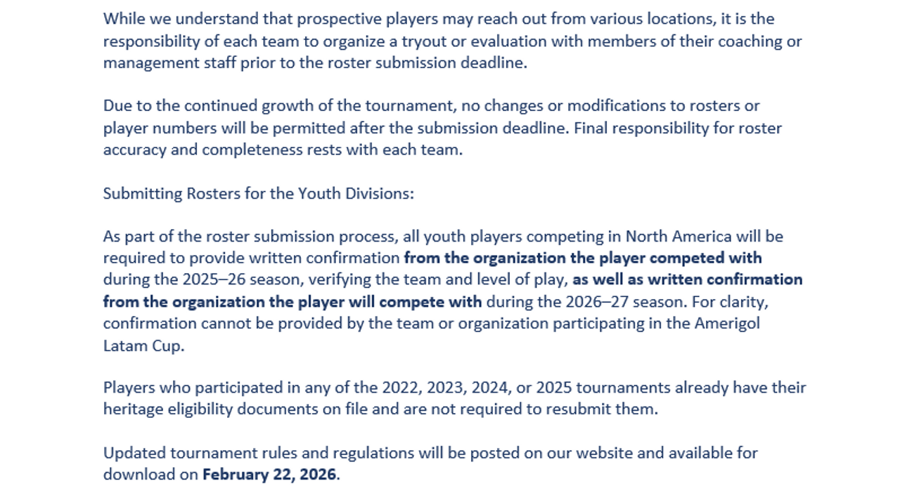 2026 AMERIGOL LATAM CUP TOURNAMENT INFORMATION
