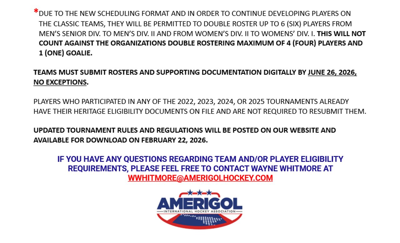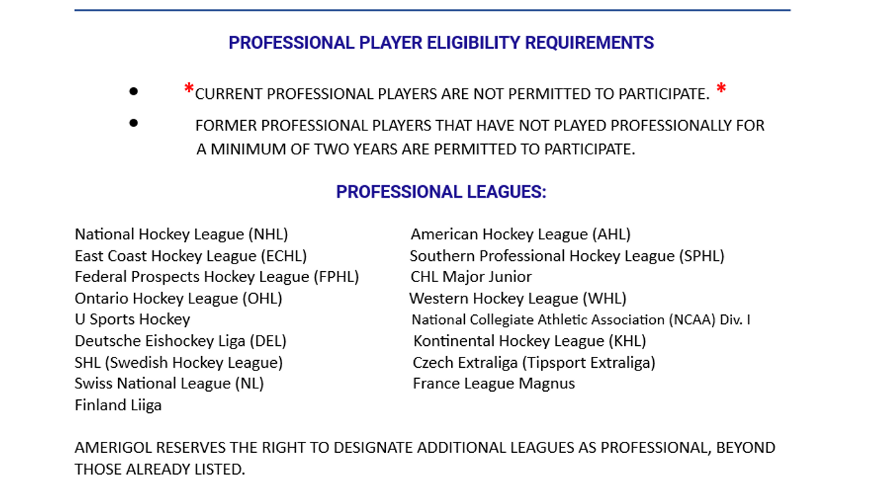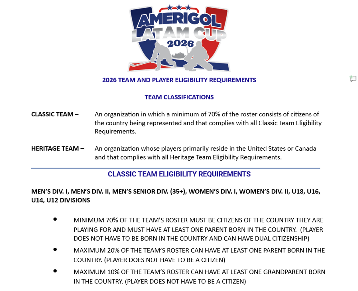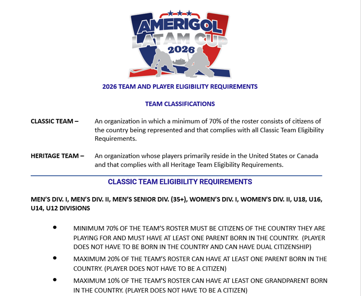2026 TEAM AND PLAYER ELIGIBILITY REQUIREMENTS