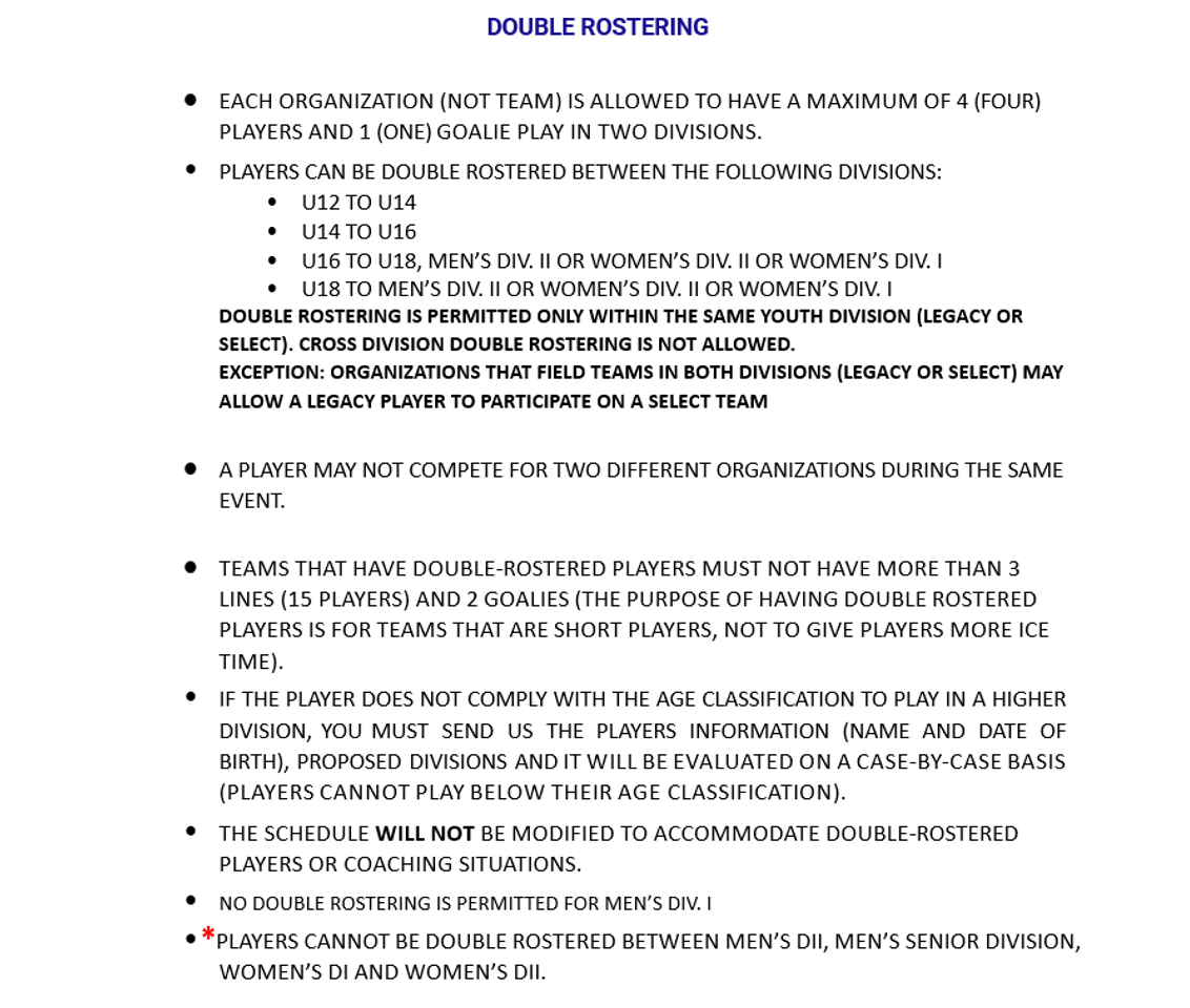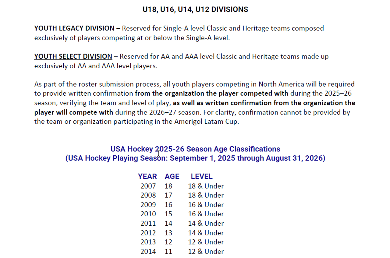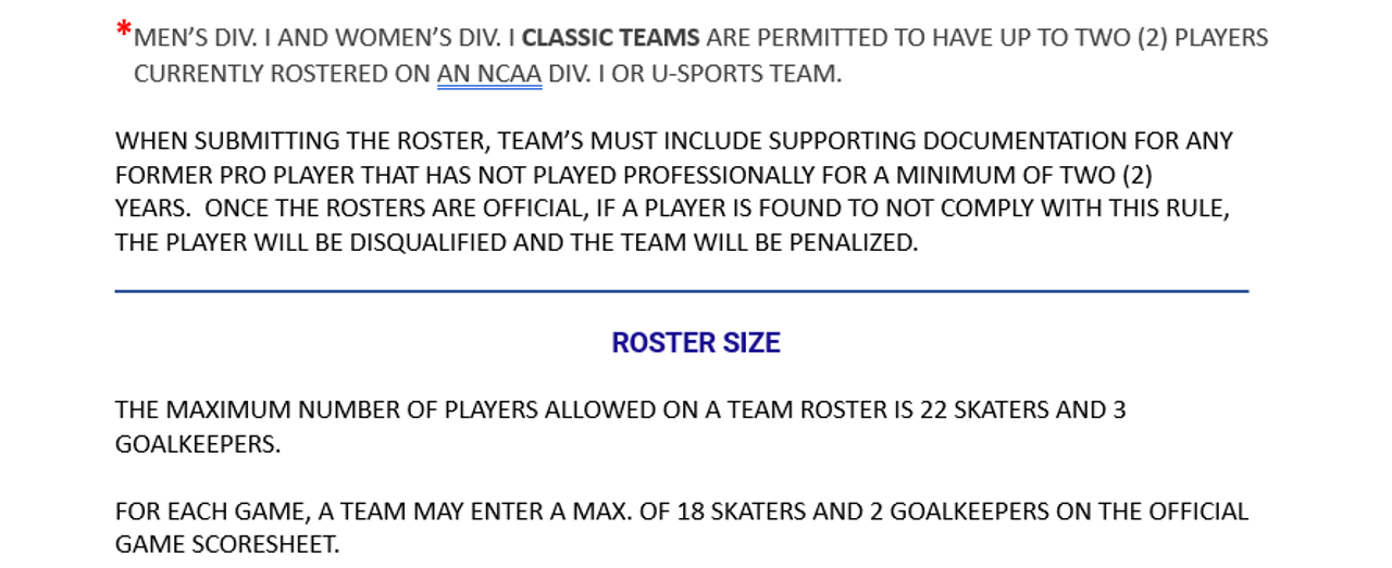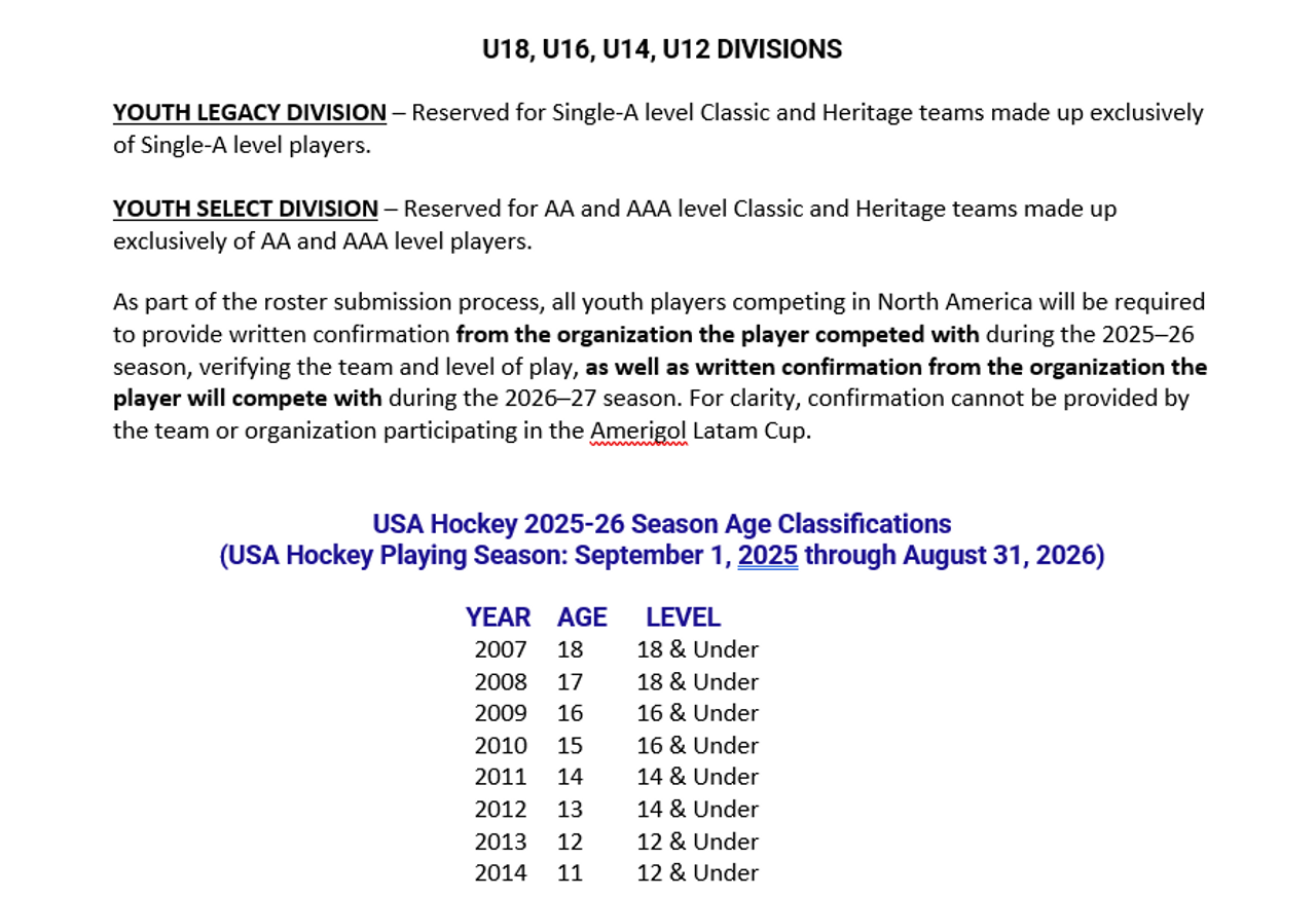 2026 TEAM AND PLAYER ELIGIBILITY REQUIREMENTS